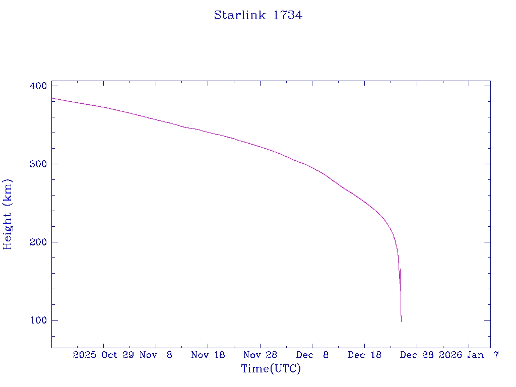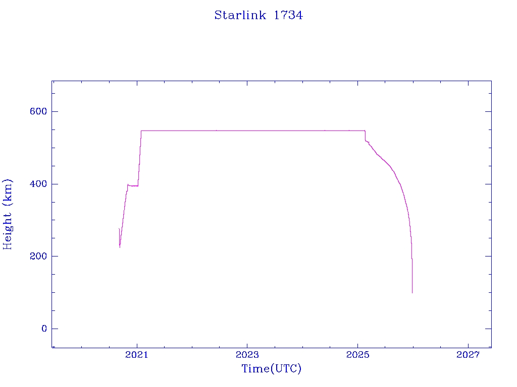 | Starlink 1734 | S46325 | R | 2020 Sep 3 | 2025 Oct 9? | 2025 Dec 25 |  |  |  |