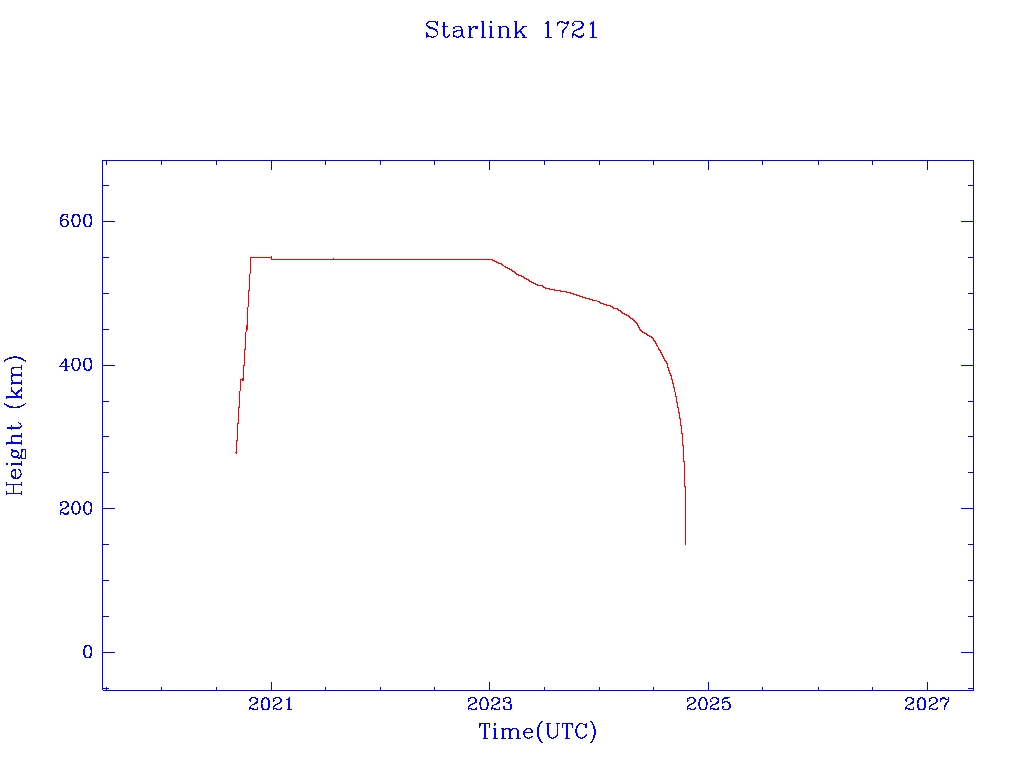 | Starlink 1721 | S46332 | M | 2020 Sep 3 | 2022 Dec 29 | 2024 Oct 15 |  |  |  |
