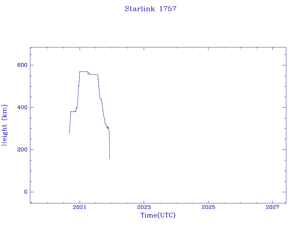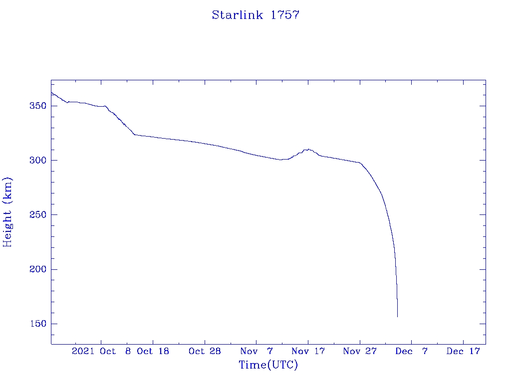 | Starlink 1757 | S46339 | R | 2020 Sep 3 | 2021 Nov 27? | 2021 Dec 4 |  |  |  |