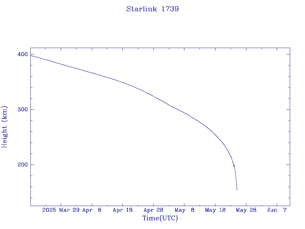 | Starlink 1739 | S46363 | R | 2020 Sep 3 | 2025 Feb 10? | 2025 May 25 |  |  |  |
