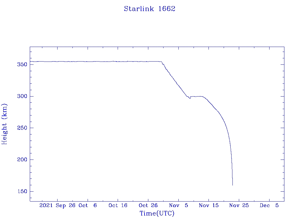 | Starlink 1662 | S46369 | R | 2020 Sep 3 | 2021 Nov 12? | 2021 Nov 22 |  |  |  |