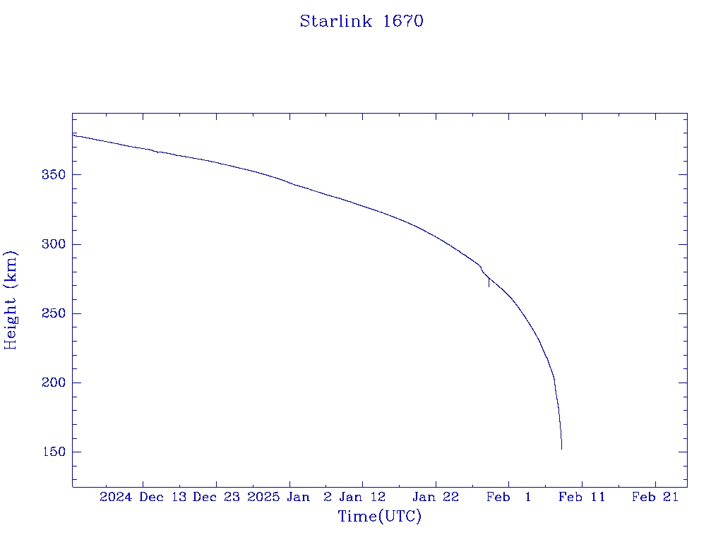 | Starlink 1670 | S46370 | R | 2020 Sep 3 | 2024 Nov 16 | 2025 Feb 8 |  |  |  |