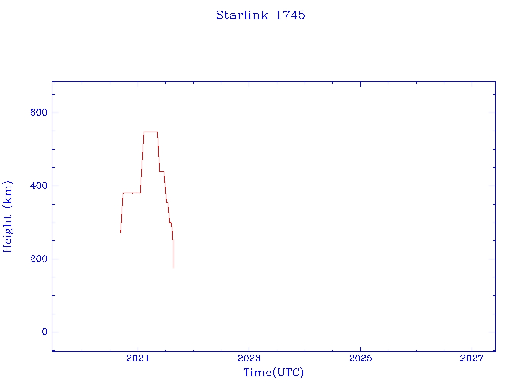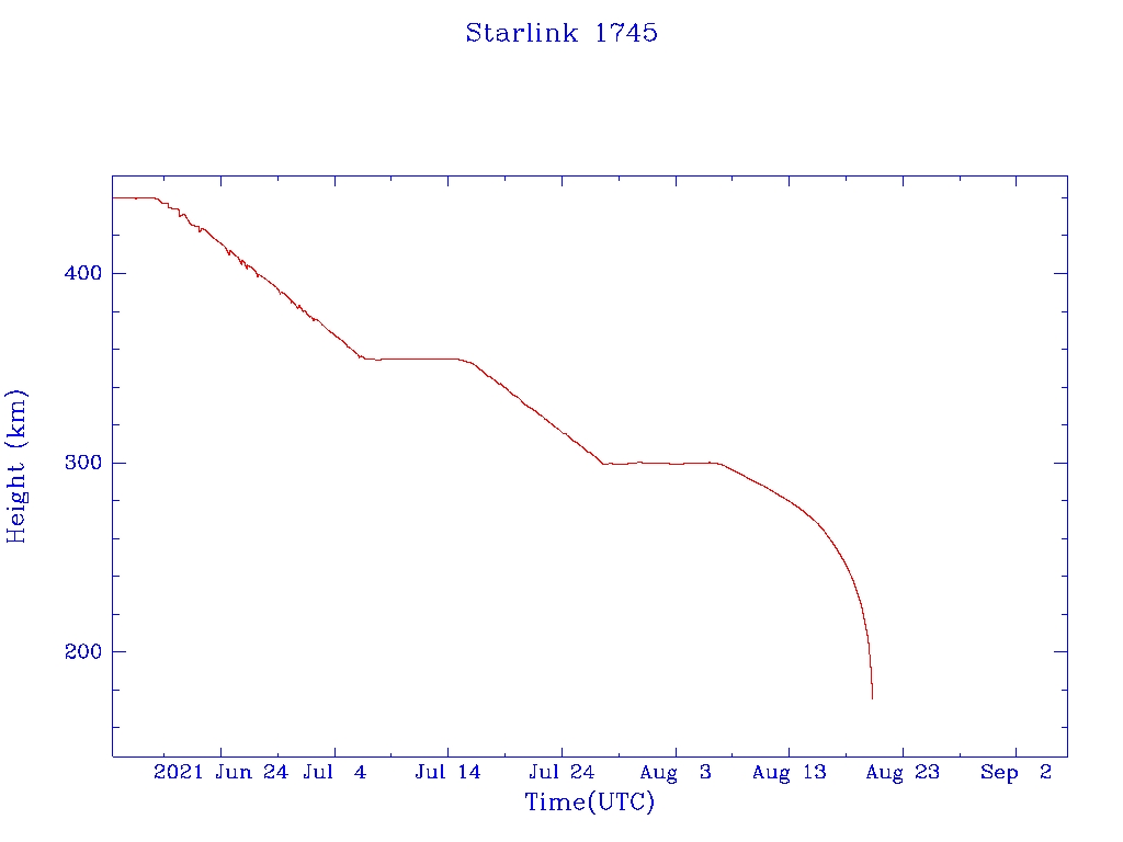 | Starlink 1745 | S46377 | R | 2020 Sep 3 | 2021 Aug 7 | 2021 Aug 20 |  |  |  |