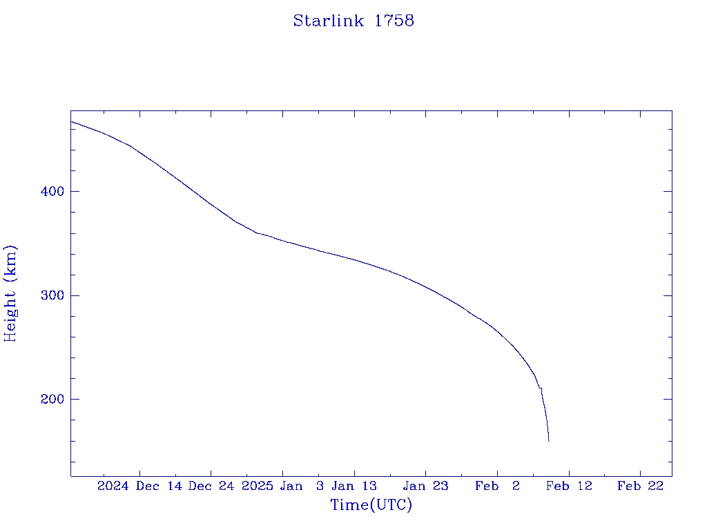 | Starlink 1758 | S46380 | R | 2020 Sep 3 | 2024 Dec 29? | 2025 Feb 9 |  |  |  |
