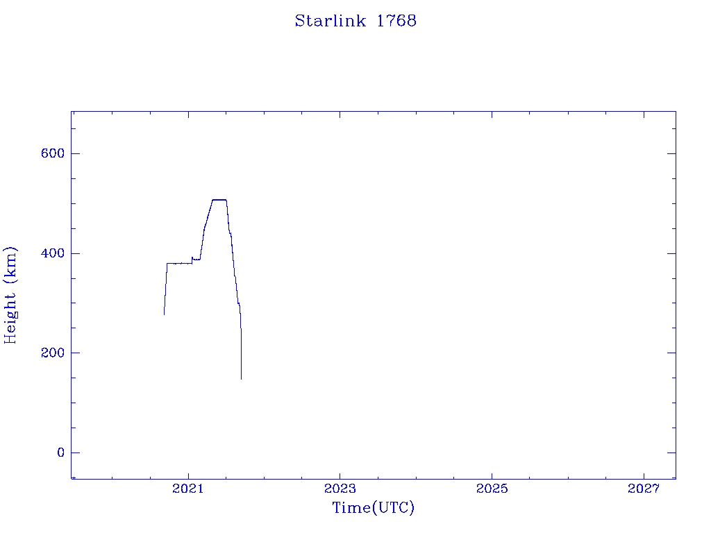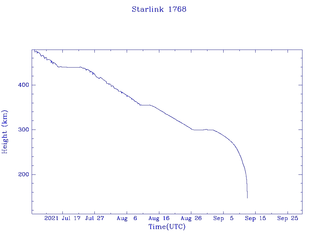 | Starlink 1768 | S46381 | R | 2020 Sep 3 | 2021 Sep 2? | 2021 Sep 12 |  |  |  |