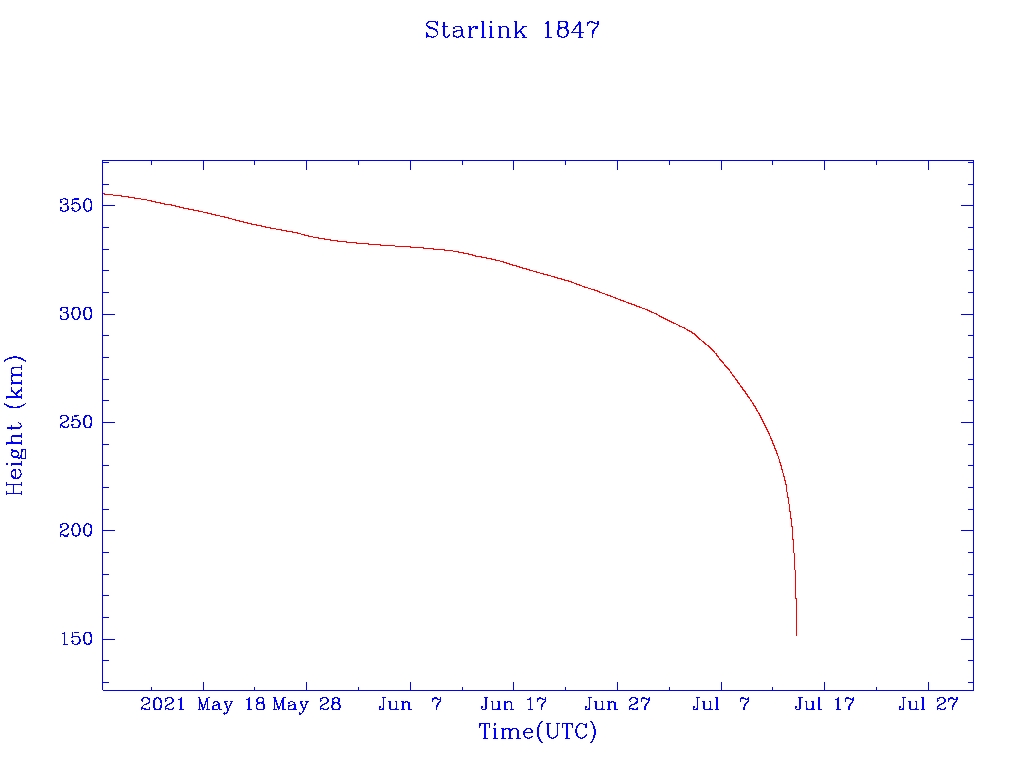 | Starlink 1847 | S46739 | M | 2020 Oct 24 | 2021 Apr 4 | 2021 Jul 14 |  |  |  |