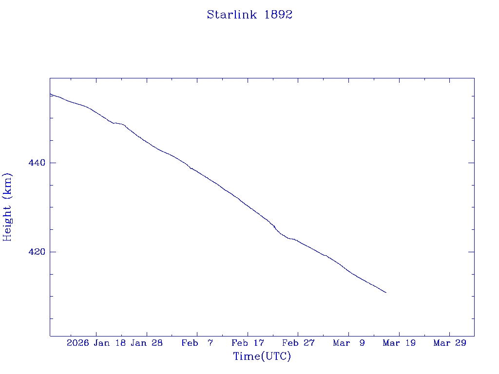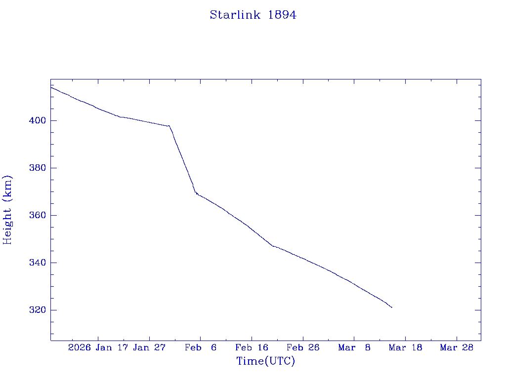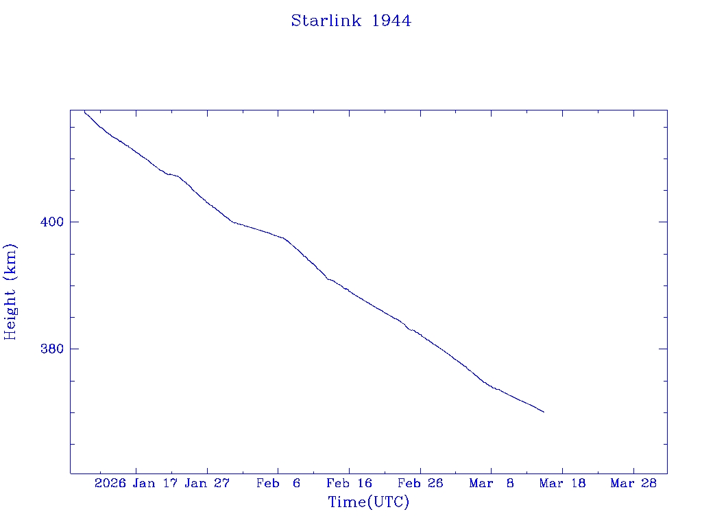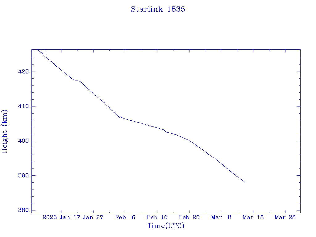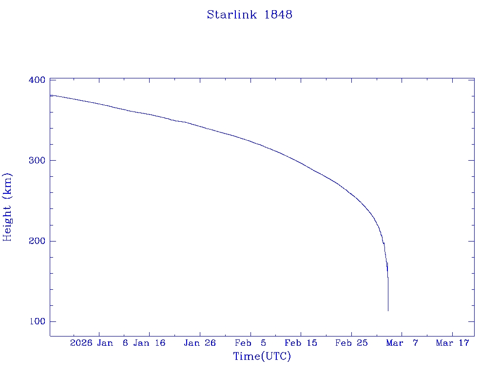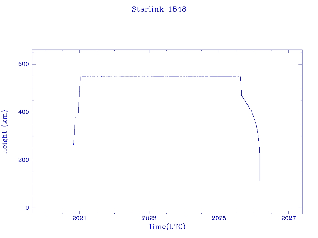 | Starlink 1848 | S46740 | R | 2020 Oct 24 | 2025 Dec 7? | 2026 Mar 4 |  |  |  |
