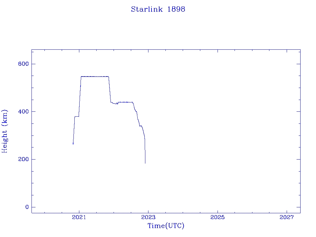 | Starlink 1898 | S46745 | R | 2020 Oct 24 | 2022 Nov 22 | 2022 Nov 27 |  |  |  |
