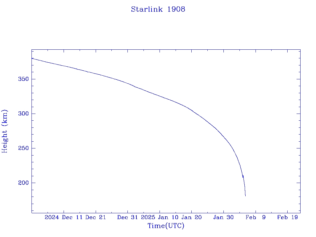 | Starlink 1908 | S46747 | R | 2020 Oct 24 | 2024 Nov 30? | 2025 Feb 6 |  |  |  |