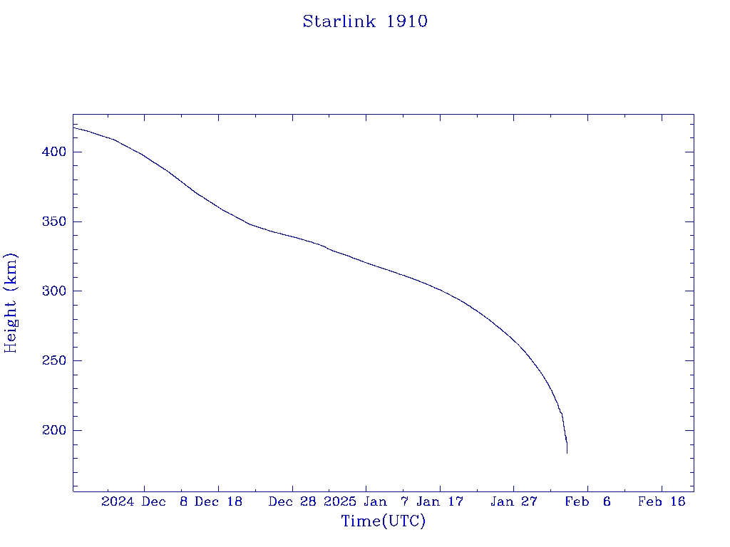 | Starlink 1910 | S46748 | R | 2020 Oct 24 | 2024 Oct 1? | 2025 Feb 3 |  |  |  |