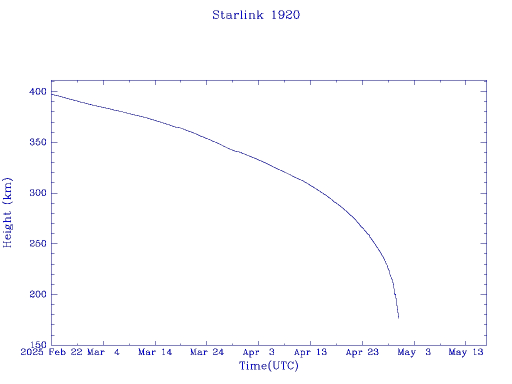 | Starlink 1920 | S46751 | R | 2020 Oct 24 | 2024 Oct? | 2025 Apr 30 |  |  |  |