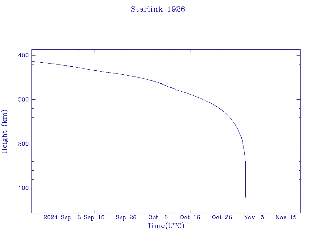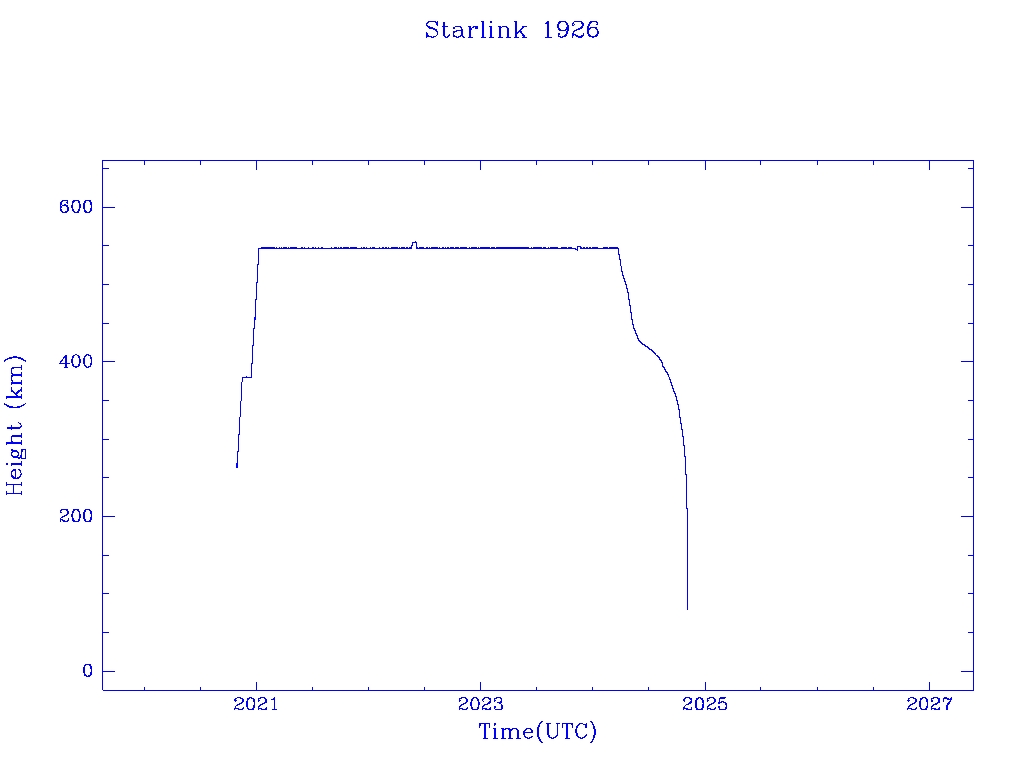 | Starlink 1926 | S46757 | R | 2020 Oct 24 | 2024 May 30? | 2024 Nov 2 |  |  |  |
