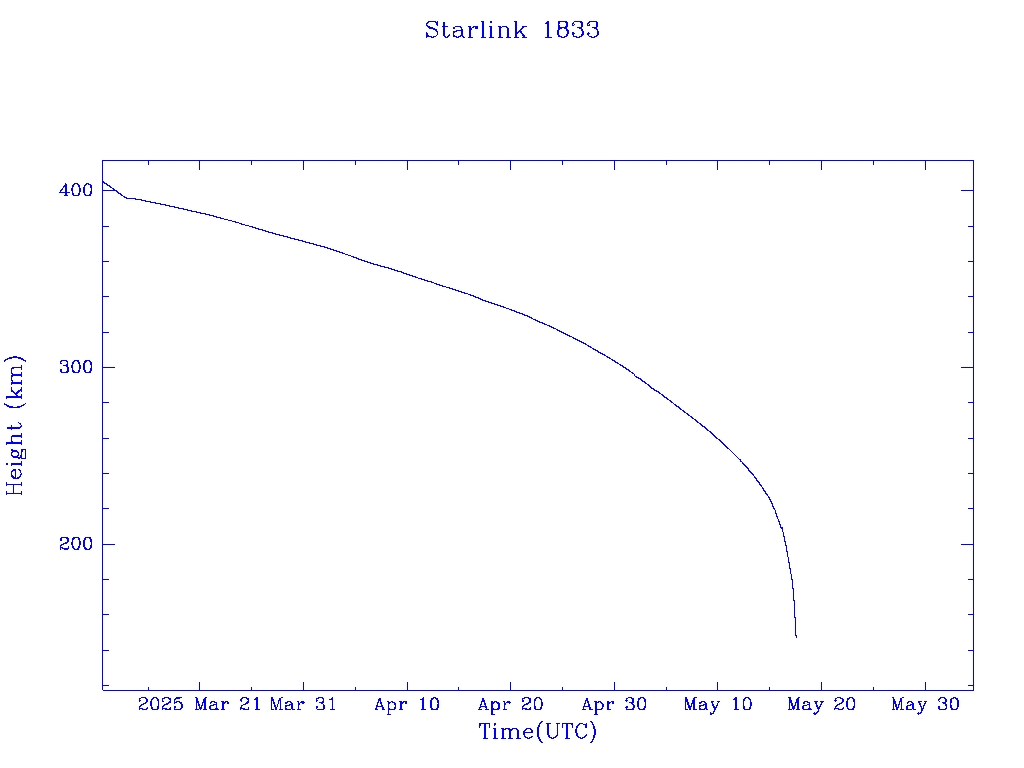 | Starlink 1833 | S46759 | R | 2020 Oct 24 | 2025 Mar 13? | 2025 May 17 |  |  |  |