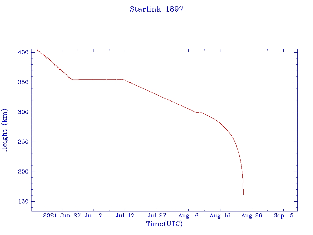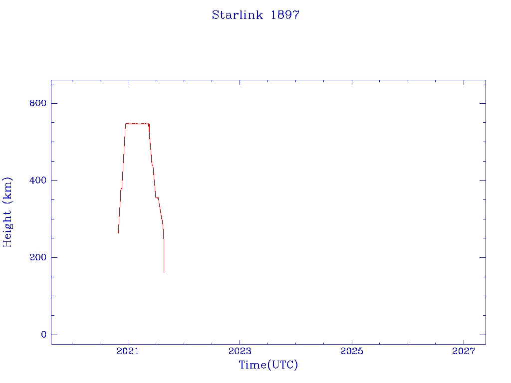 | Starlink 1897 | S46761 | R | 2020 Oct 24 | 2021 Aug 10? | 2021 Aug 23 |  |  |  |