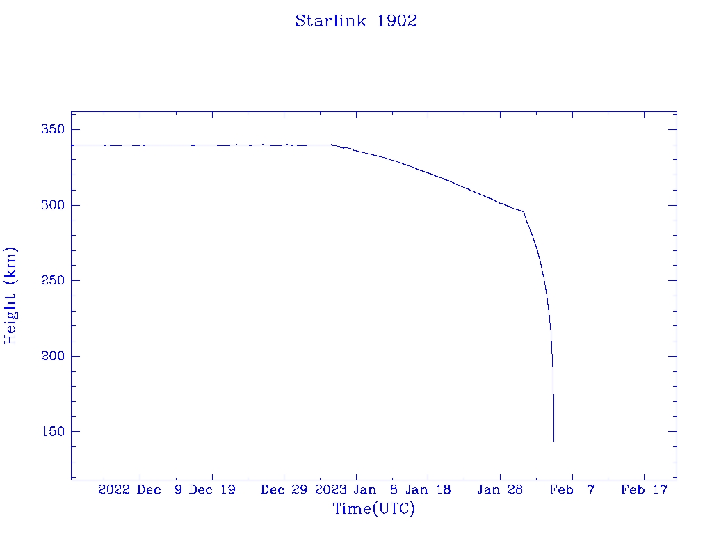 | Starlink 1902 | S46763 | R | 2020 Oct 24 | 2023 Jan 31 | 2023 Feb 4 |  |  |  |