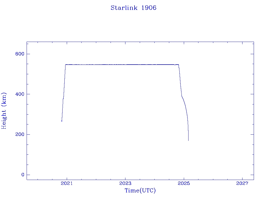 | Starlink 1906 | S46765 | R | 2020 Oct 24 | 2024 Dec 3? | 2025 Feb 25 |  |  |  |