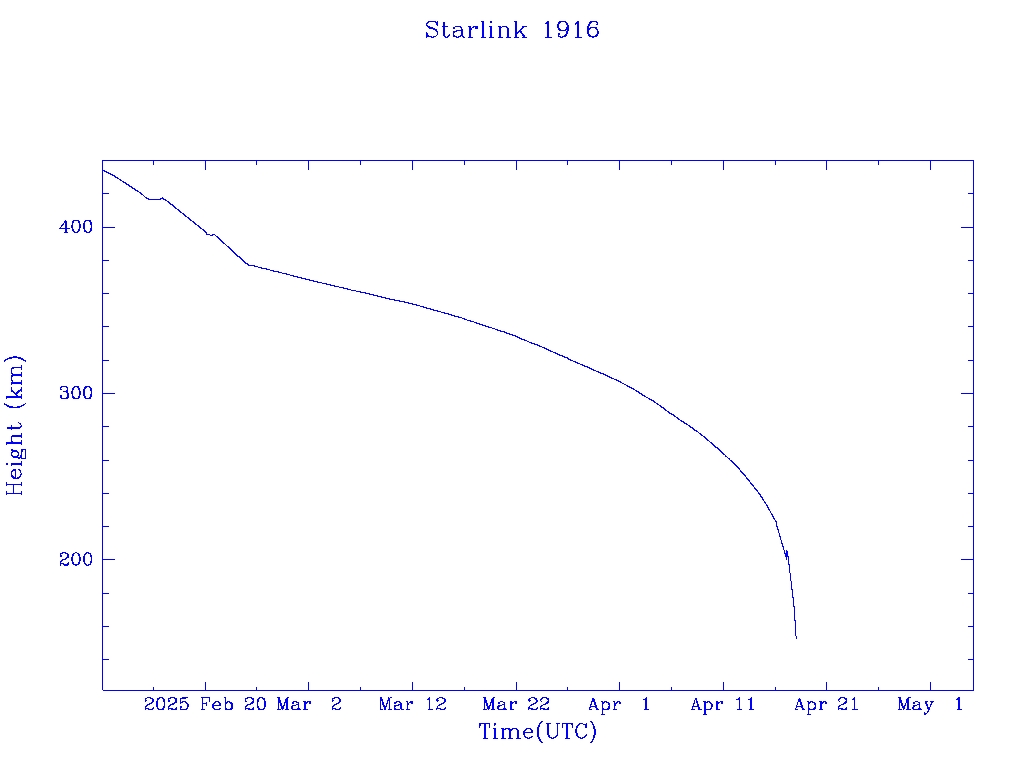 | Starlink 1916 | S46766 | R | 2020 Oct 24 | 2025 Feb 23? | 2025 Apr 18 |  |  |  |