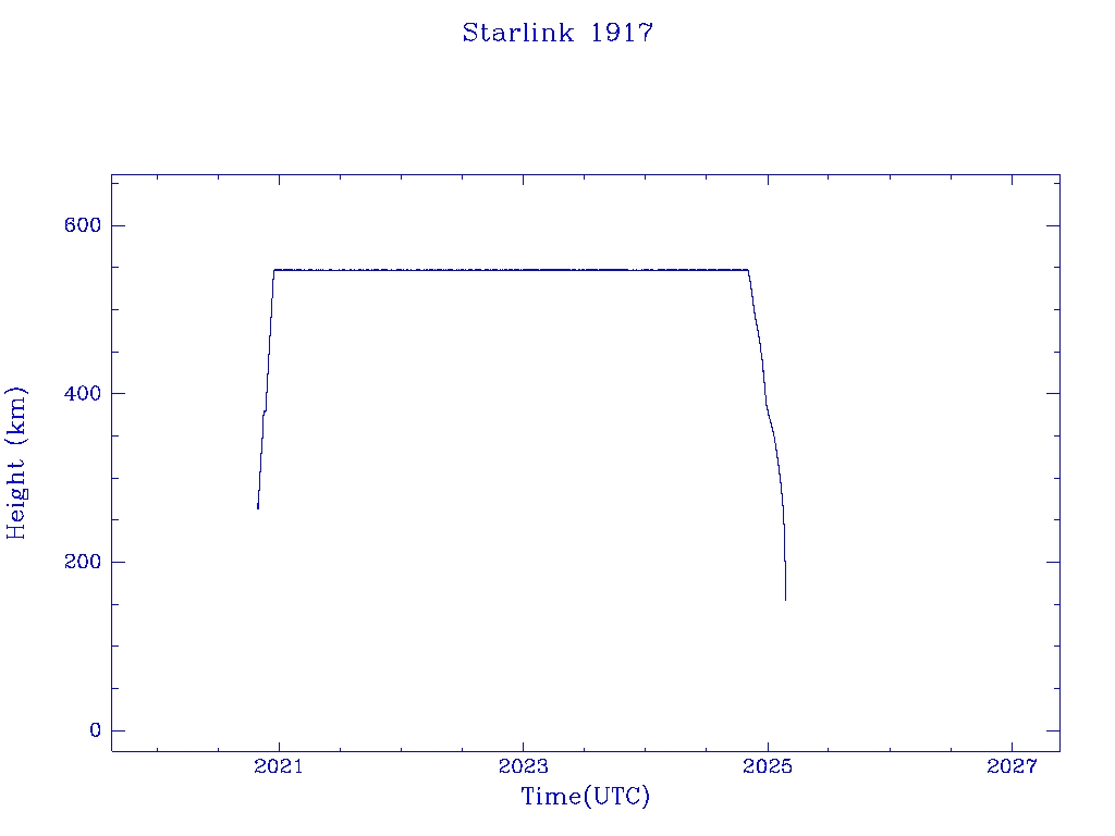| Starlink 1917 | S46767 | R | 2020 Oct 24 | 2024 Dec 26? | 2025 Feb 21 |  |  |  |