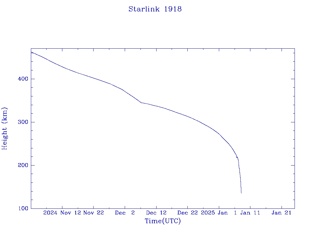 | Starlink 1918 | S46768 | R | 2020 Oct 24 | 2024 Dec 7? | 2025 Jan 8 |  |  |  |