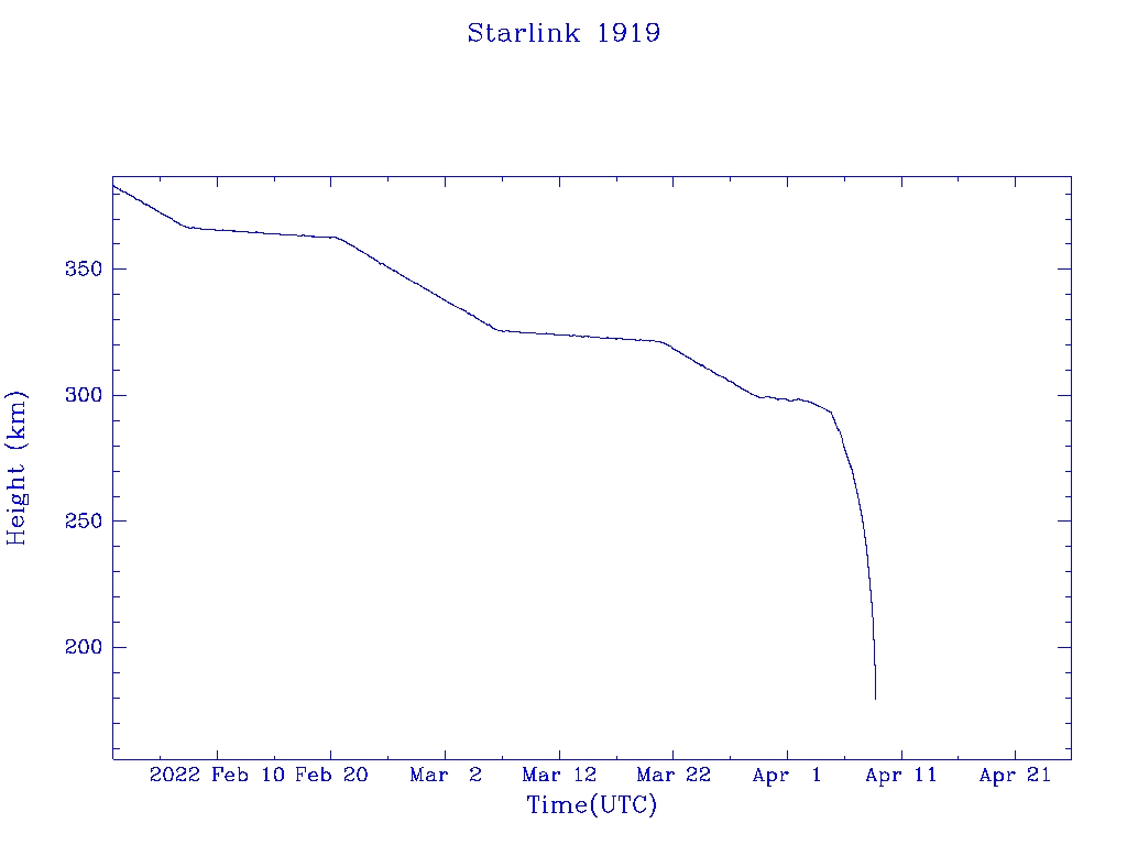| Starlink 1919 | S46769 | R | 2020 Oct 24 | 2022 Apr 5? | 2022 Apr 8 |  |  |  |
