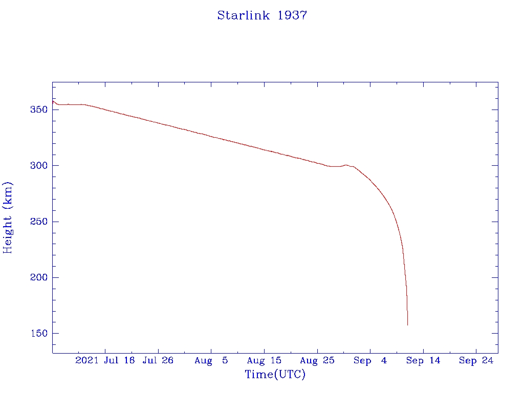 | Starlink 1937 | S46773 | R | 2020 Oct 24 | 2021 Sep 1? | 2021 Sep 11 |  |  |  |