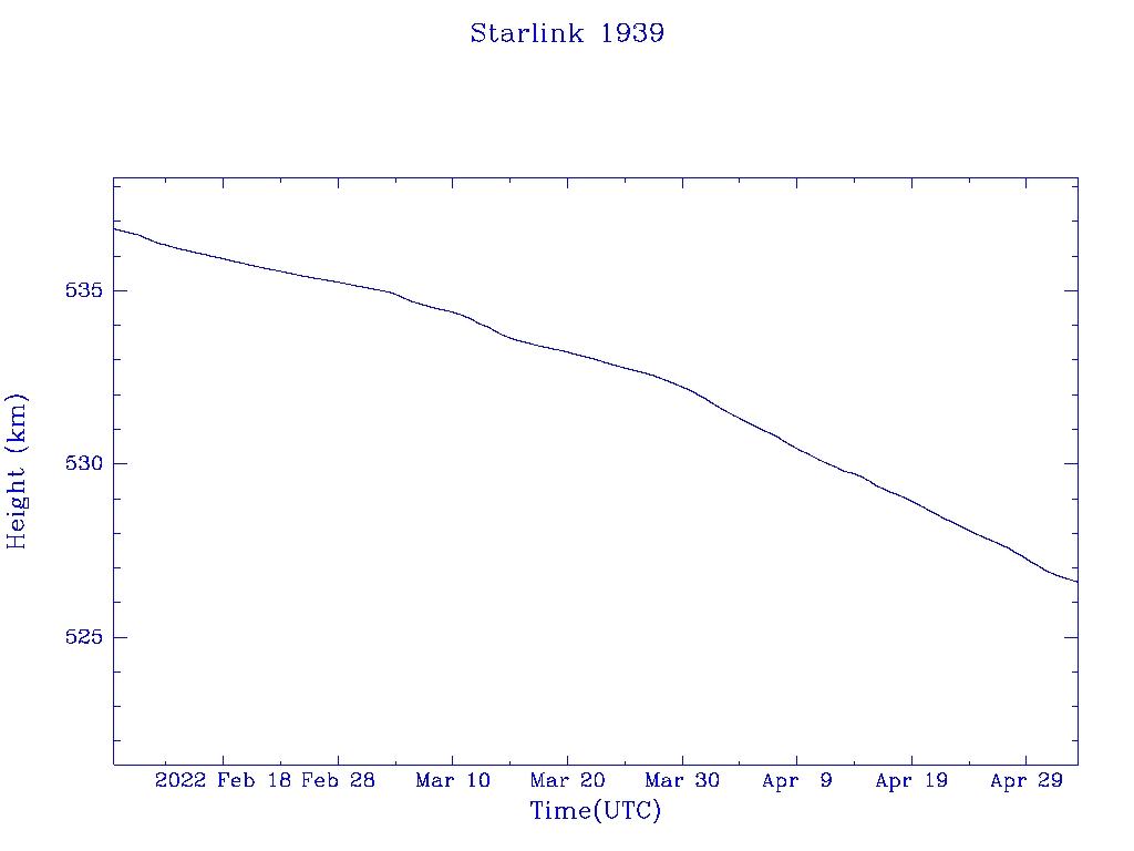 | Starlink 1939 | S46774 | M | 2020 Oct 24 | 2021 Mar 21? | 2022 Apr 16 |  |  |  |