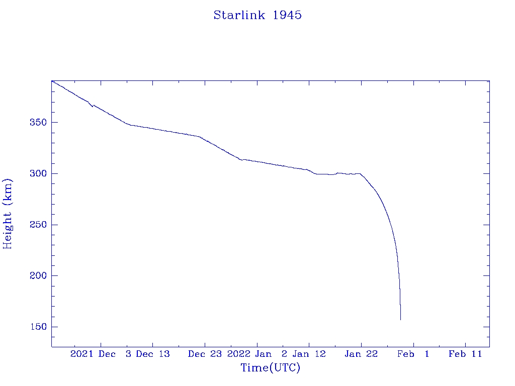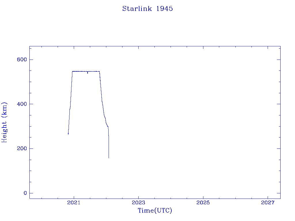 | Starlink 1945 | S46775 | R | 2020 Oct 24 | 2022 Jan 22? | 2022 Jan 29 |  |  |  |