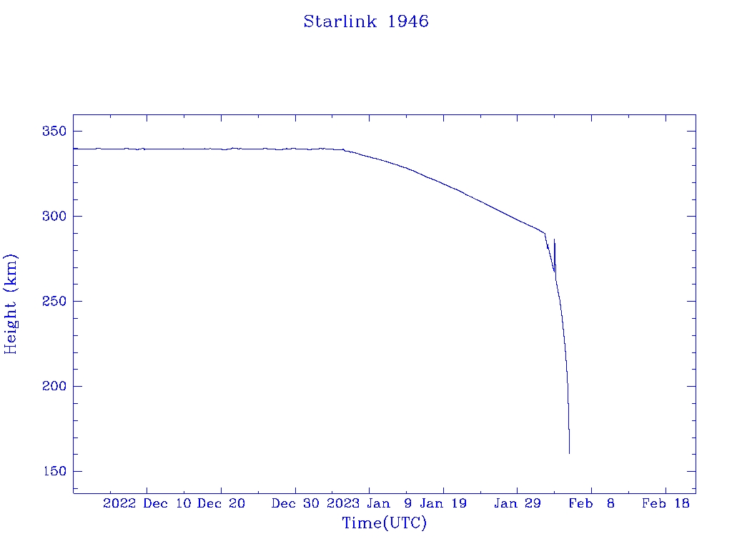 | Starlink 1946 | S46776 | R | 2020 Oct 24 | 2023 Feb 1 | 2023 Feb 5 |  |  |  |