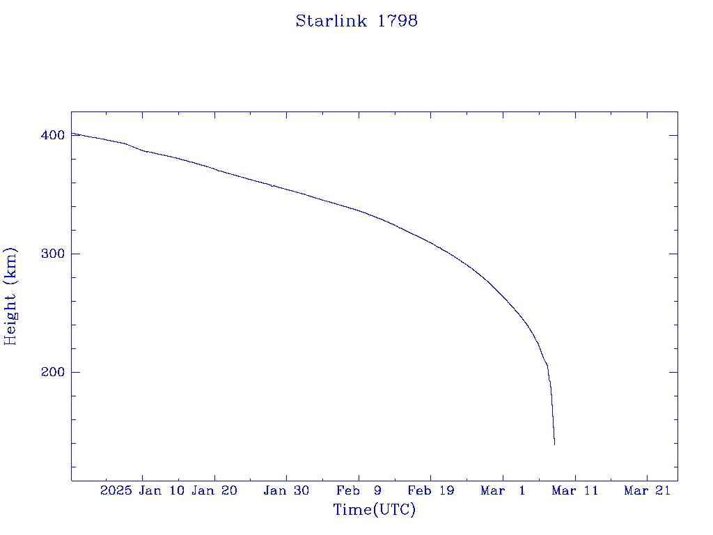 | Starlink 1798 | S46779 | R | 2020 Oct 24 | 2024 Dec 6? | 2025 Mar 8 |  |  |  |