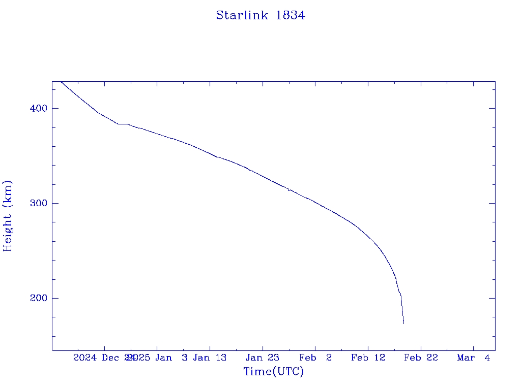 | Starlink 1834 | S46781 | R | 2020 Oct 24 | 2024 Dec 28? | 2025 Feb 19 |  |  |  |