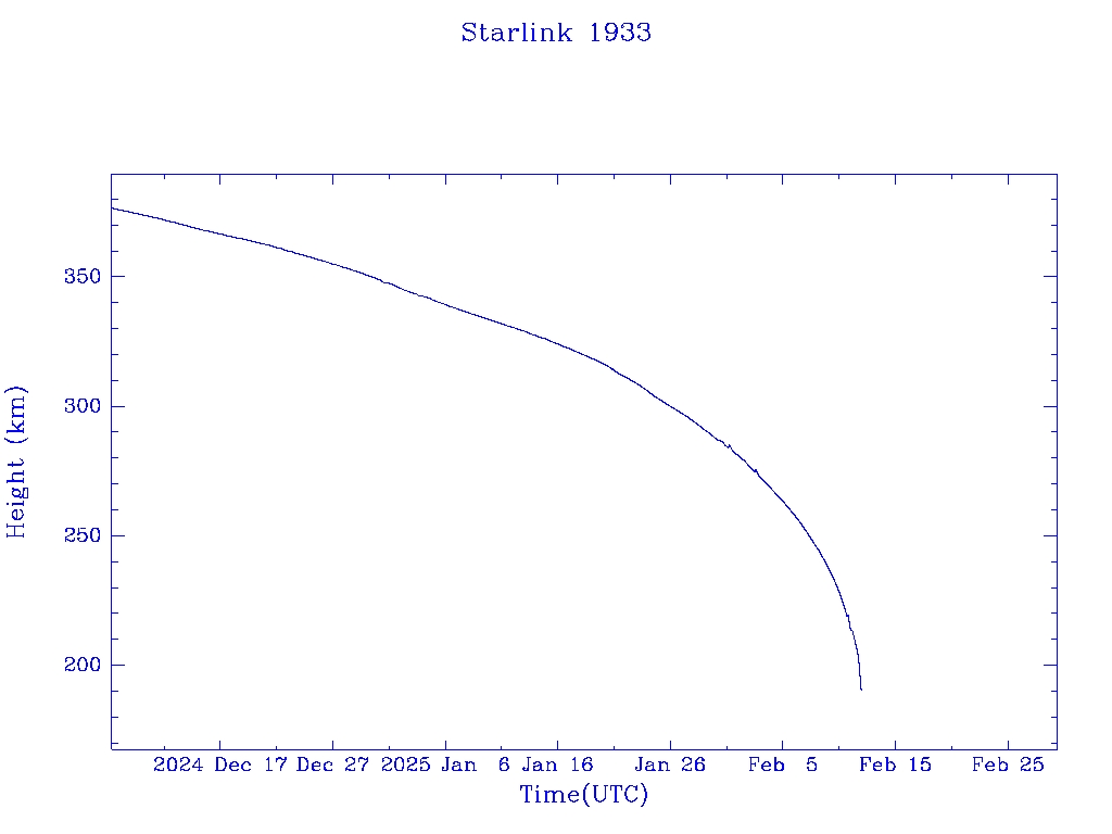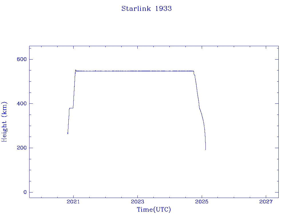 | Starlink 1933 | S46791 | R | 2020 Oct 24 | 2024 Dec 2? | 2025 Feb 12 |  |  |  |