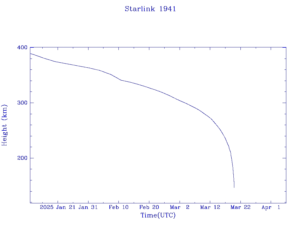 | Starlink 1941 | S46793 | R | 2020 Oct 24 | 2025 Feb 10? | 2025 Mar 19 |  |  |  |
