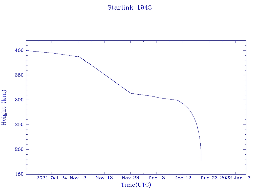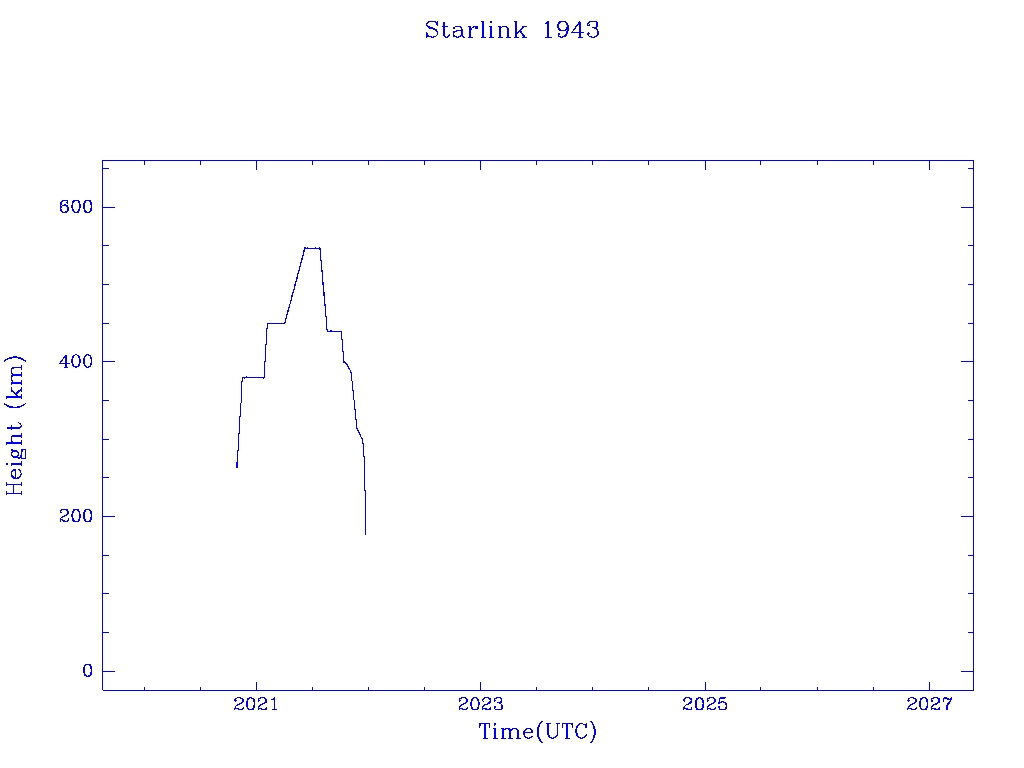| Starlink 1943 | S46795 | R | 2020 Oct 24 | 2021 Dec 11 | 2021 Dec 20 |  |  |  |