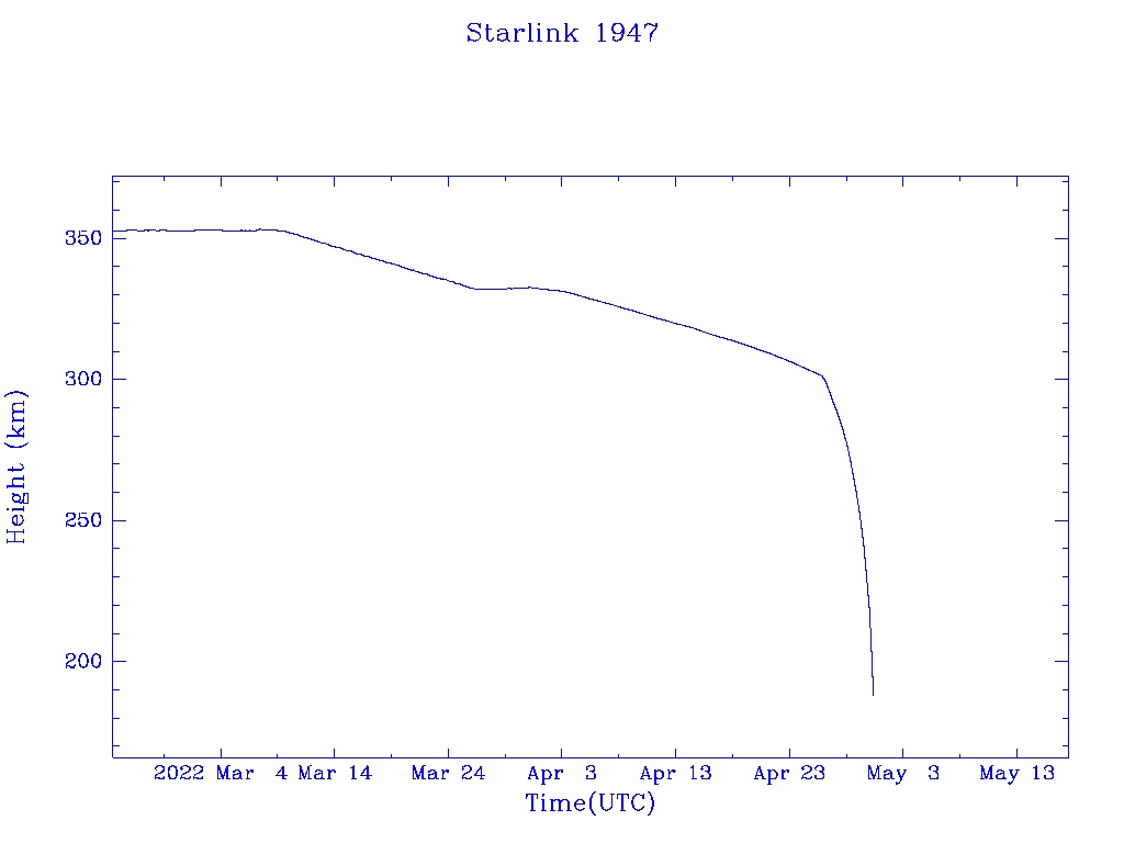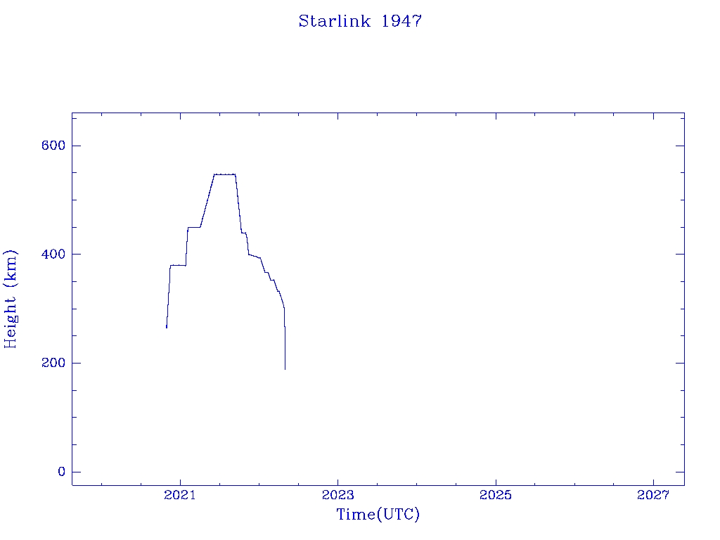 | Starlink 1947 | S46797 | R | 2020 Oct 24 | 2022 Apr 26 | 2022 Apr 30 |  |  |  |
