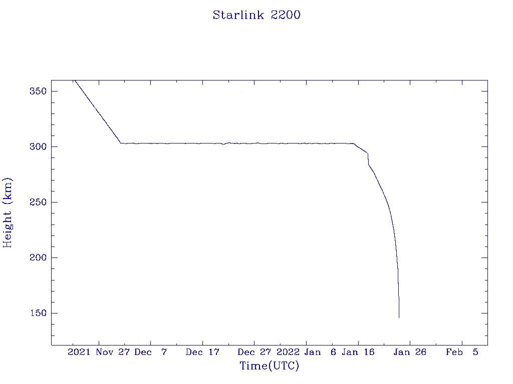 | Starlink 2200 | S47414 | R | 2021 Jan 24 | 2022 Jan 18 | 2022 Jan 23 |  |  |  |