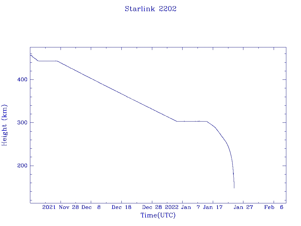 | Starlink 2202 | S47416 | R | 2021 Jan 24 | 2022 Jan 15 | 2022 Jan 24 |  |  |  |