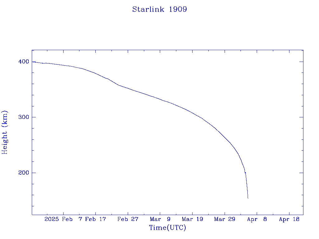 | Starlink 1909 | S47550 | R | 2021 Feb 4 | 2025 Feb 22? | 2025 Apr 5 |  |  |  |