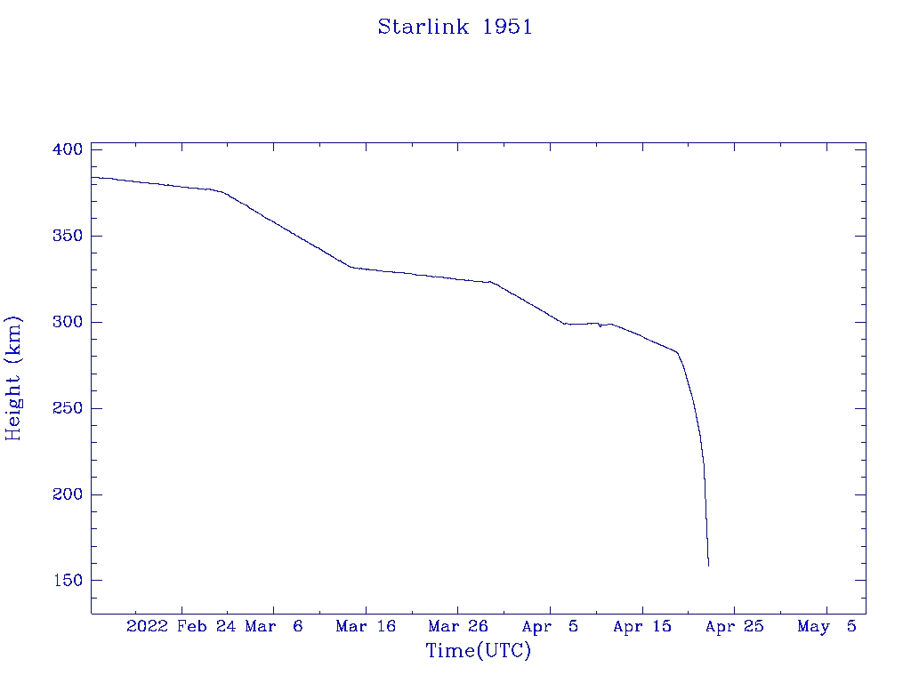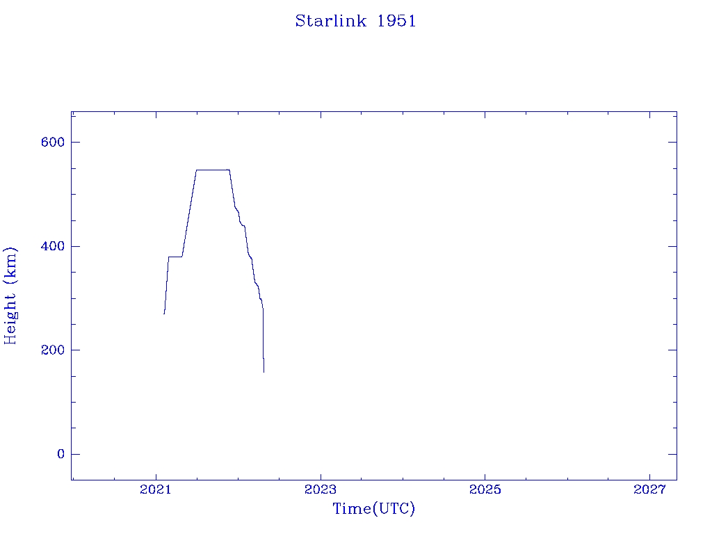 | Starlink 1951 | S47553 | R | 2021 Feb 4 | 2022 Apr 18 | 2022 Apr 22 |  |  |  |
