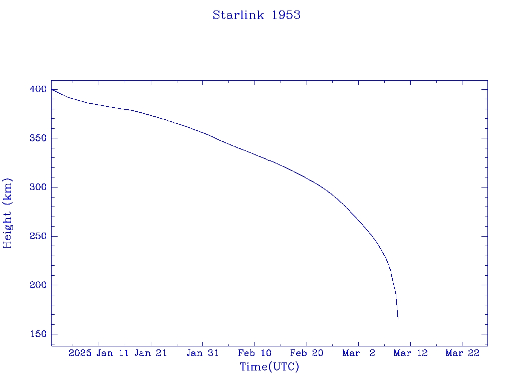 | Starlink 1953 | S47554 | R | 2021 Feb 4 | 2025 Jan 17 | 2025 Mar 9 |  |  |  |