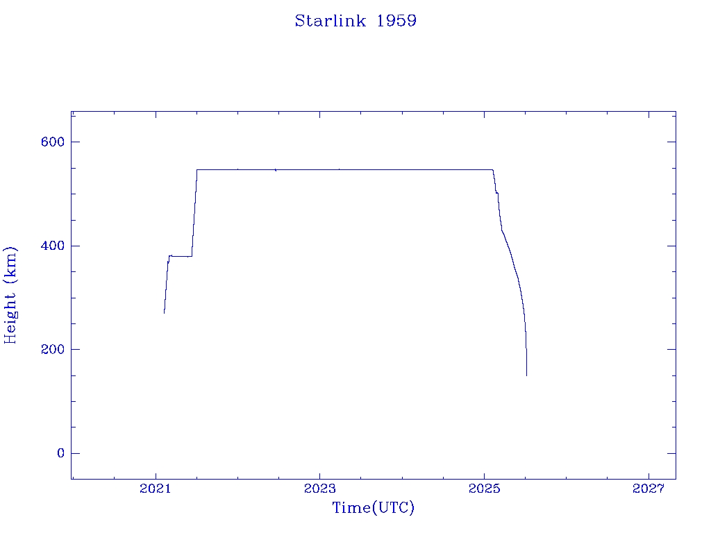 | Starlink 1959 | S47560 | R | 2021 Feb 4 | 2025 Mar 21? | 2025 Jul 6 |  |  |  |