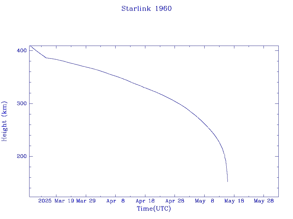| Starlink 1960 | S47561 | R | 2021 Feb 4 | 2025 Mar 15? | 2025 May 15 |  |  |  |