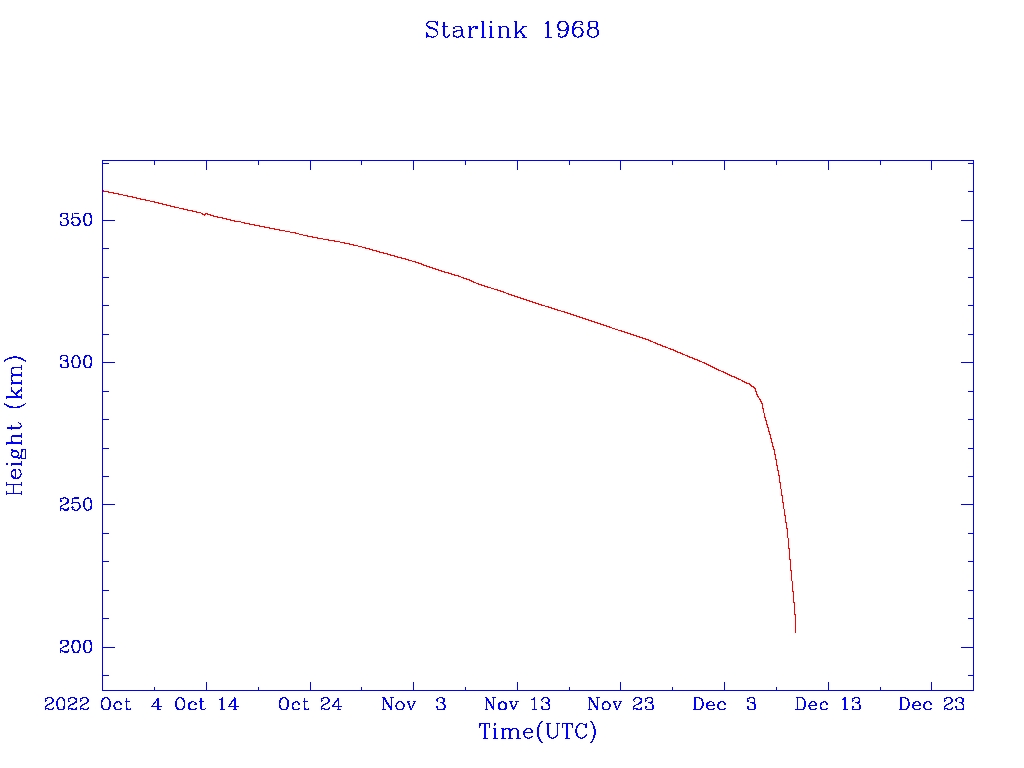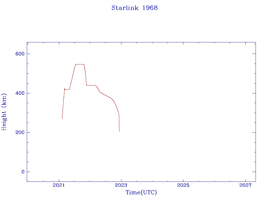 | Starlink 1968 | S47569 | M | 2021 Feb 4 | 2022 Mar 8? | 2022 Dec 10 |  |  |  |
