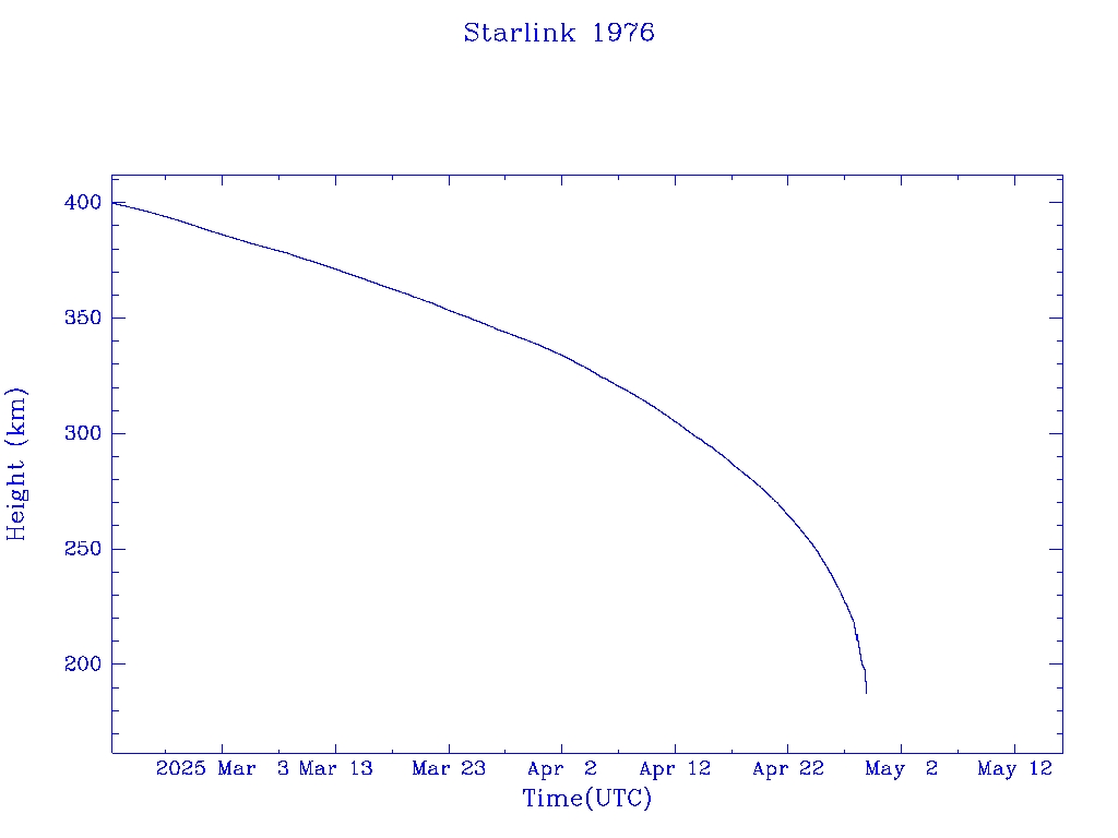 | Starlink 1976 | S47574 | R | 2021 Feb 4 | 2024 Dec 5? | 2025 Apr 29 |  |  |  |