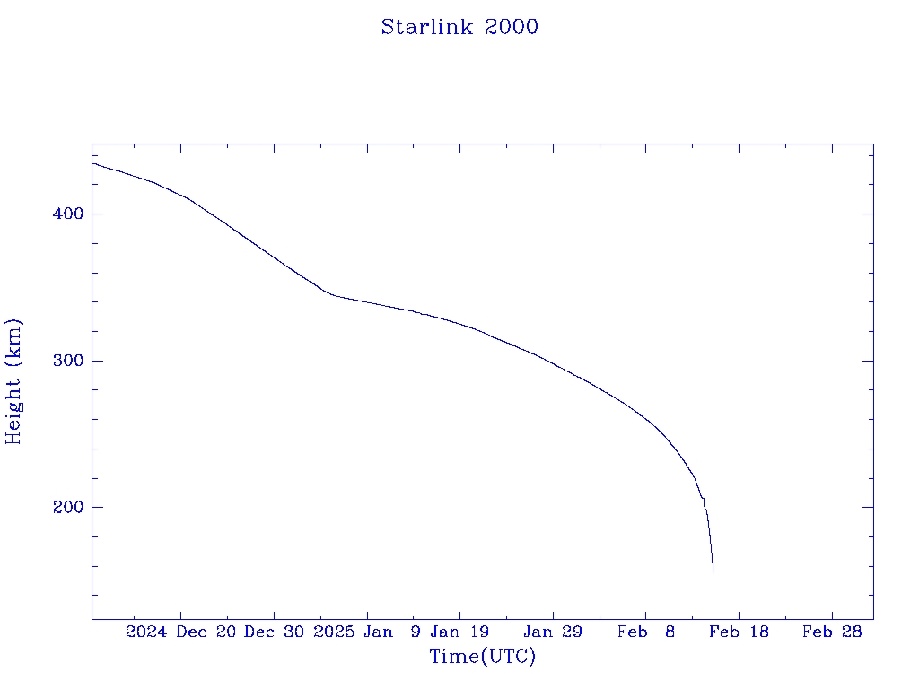 | Starlink 2000 | S47595 | R | 2021 Feb 4 | 2025 Jan 4? | 2025 Feb 15 |  |  |  |
