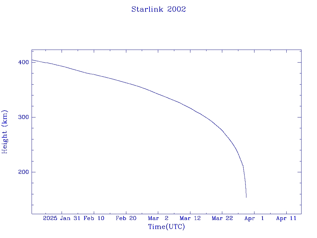 | Starlink 2002 | S47597 | R | 2021 Feb 4 | 2025 Jan 3? | 2025 Mar 29 |  |  |  |