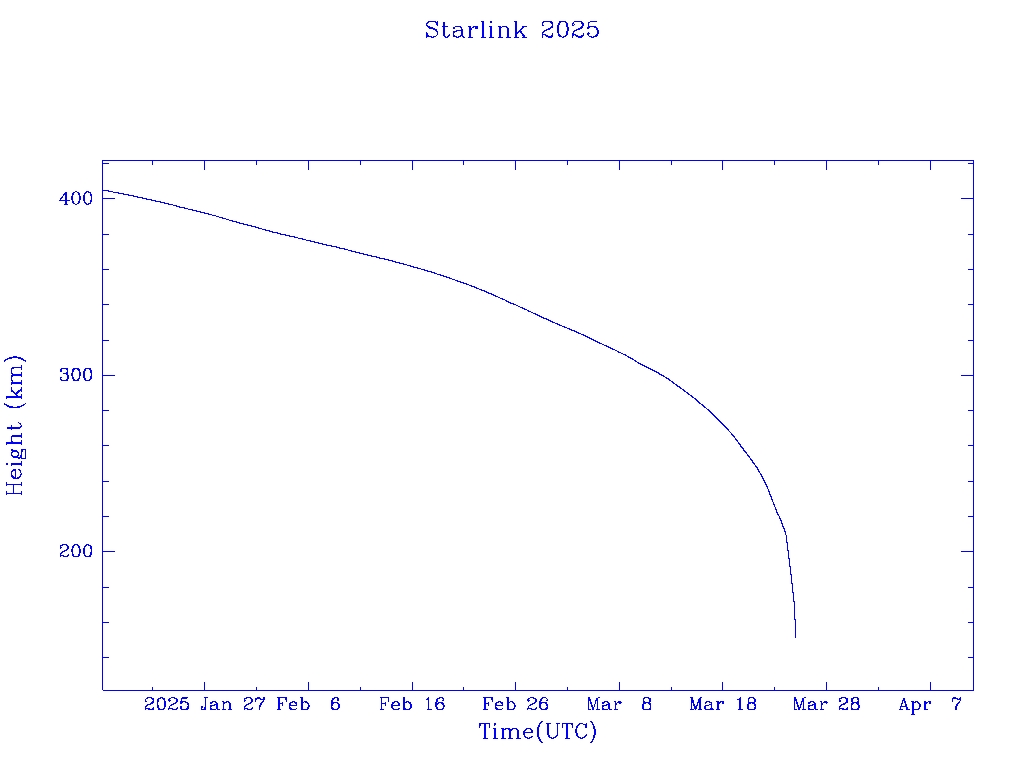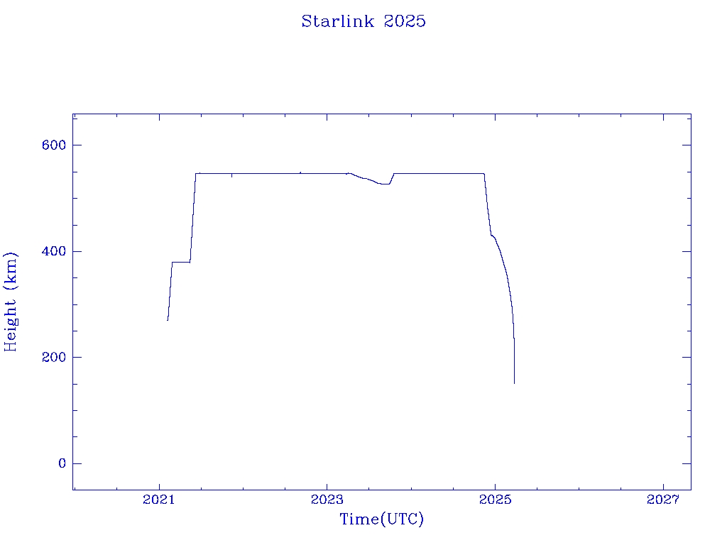 | Starlink 2025 | S47607 | R | 2021 Feb 4 | 2024 Dec 28? | 2025 Mar 25 |  |  |  |