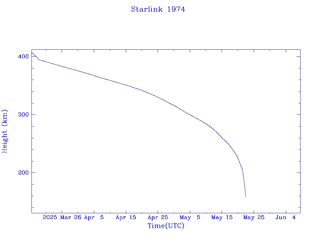 | Starlink 1974 | S47629 | R | 2021 Feb 16 | 2025 Mar 18? | 2025 May 22 |  |  |  |