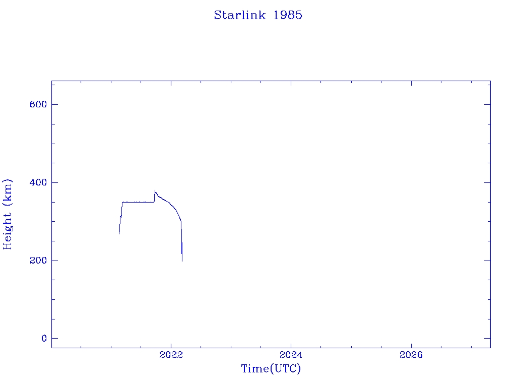 | Starlink 1985 | S47631 | F | 2021 Feb 16 | 2022 Mar 1? | 2022 Mar 7 |  |  |  |