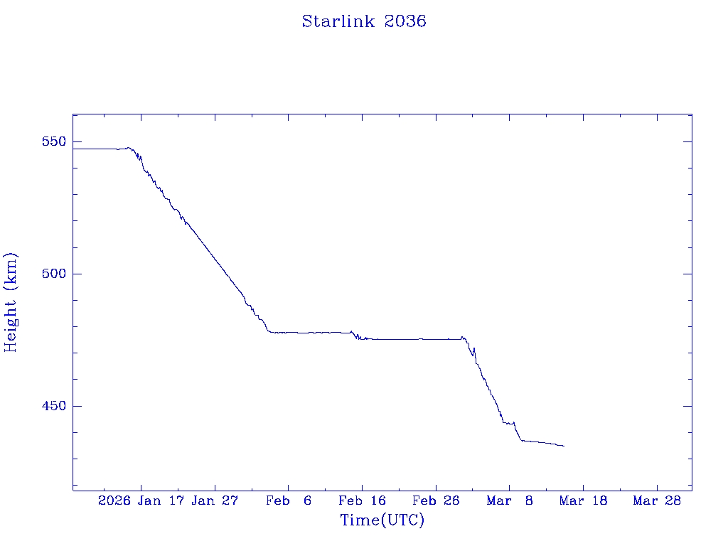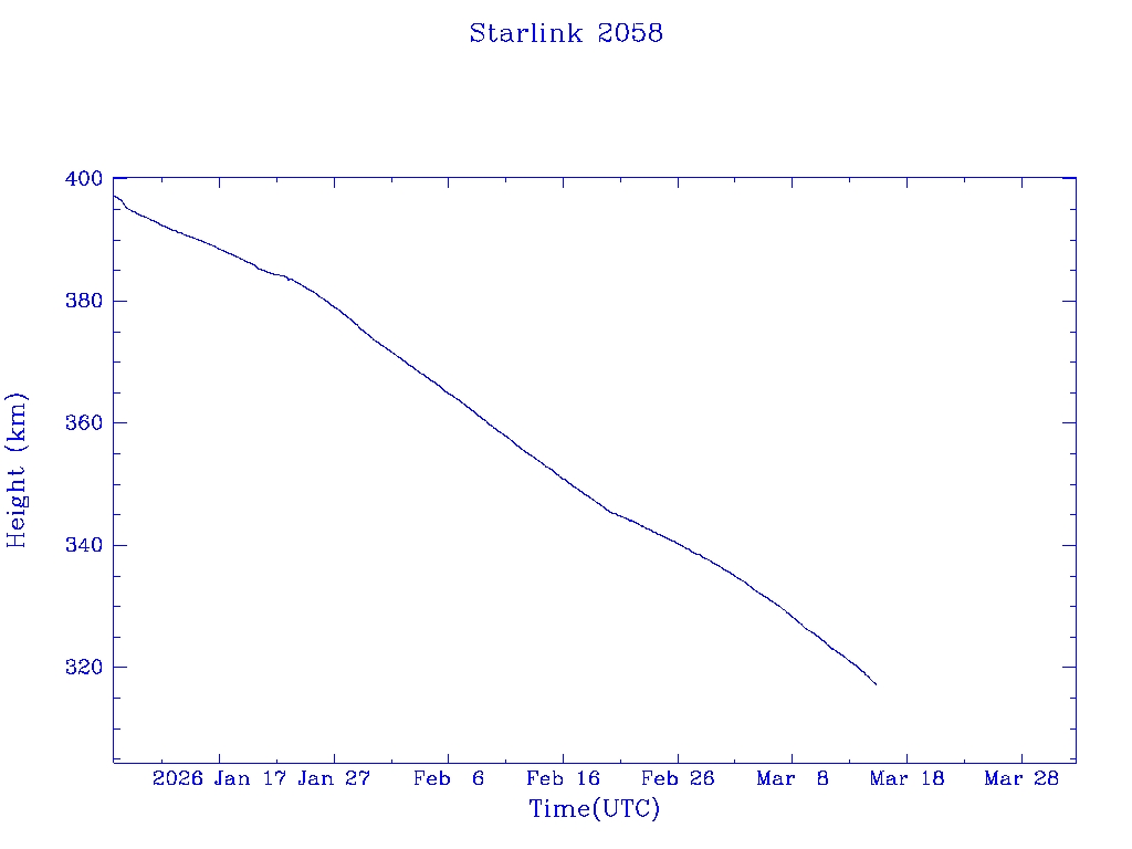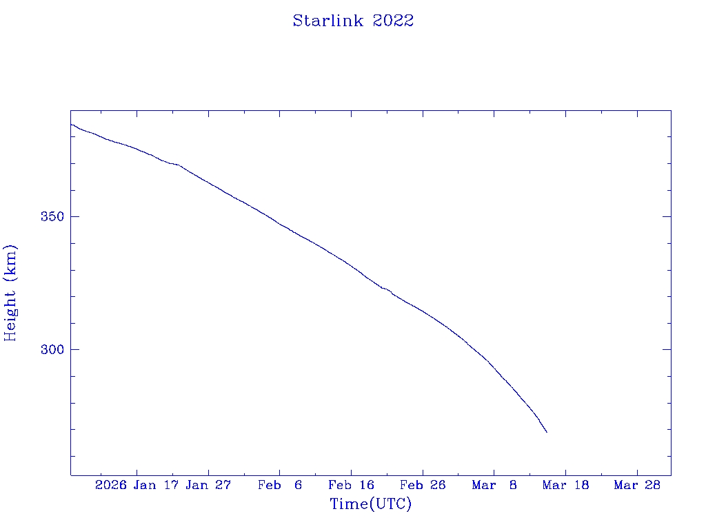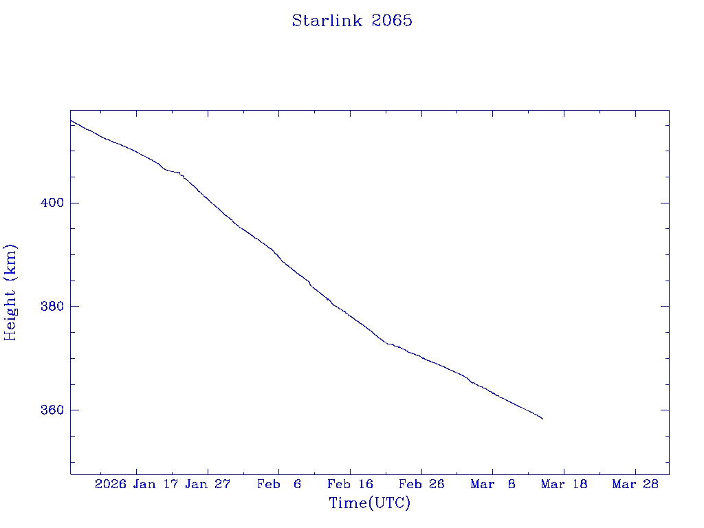 | Starlink 2078 | S47675 | R | 2021 Feb 16 | 2025 Feb 21? | 2025 Mar 17 |  |  |  |