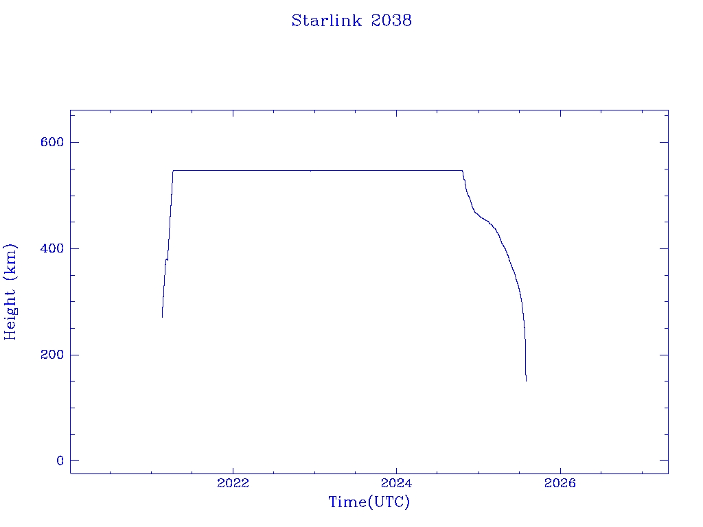 | Starlink 2038 | S47654 | R | 2021 Feb 16 | 2024 Dec 2? | 2025 Jul 30 |  |  |  |